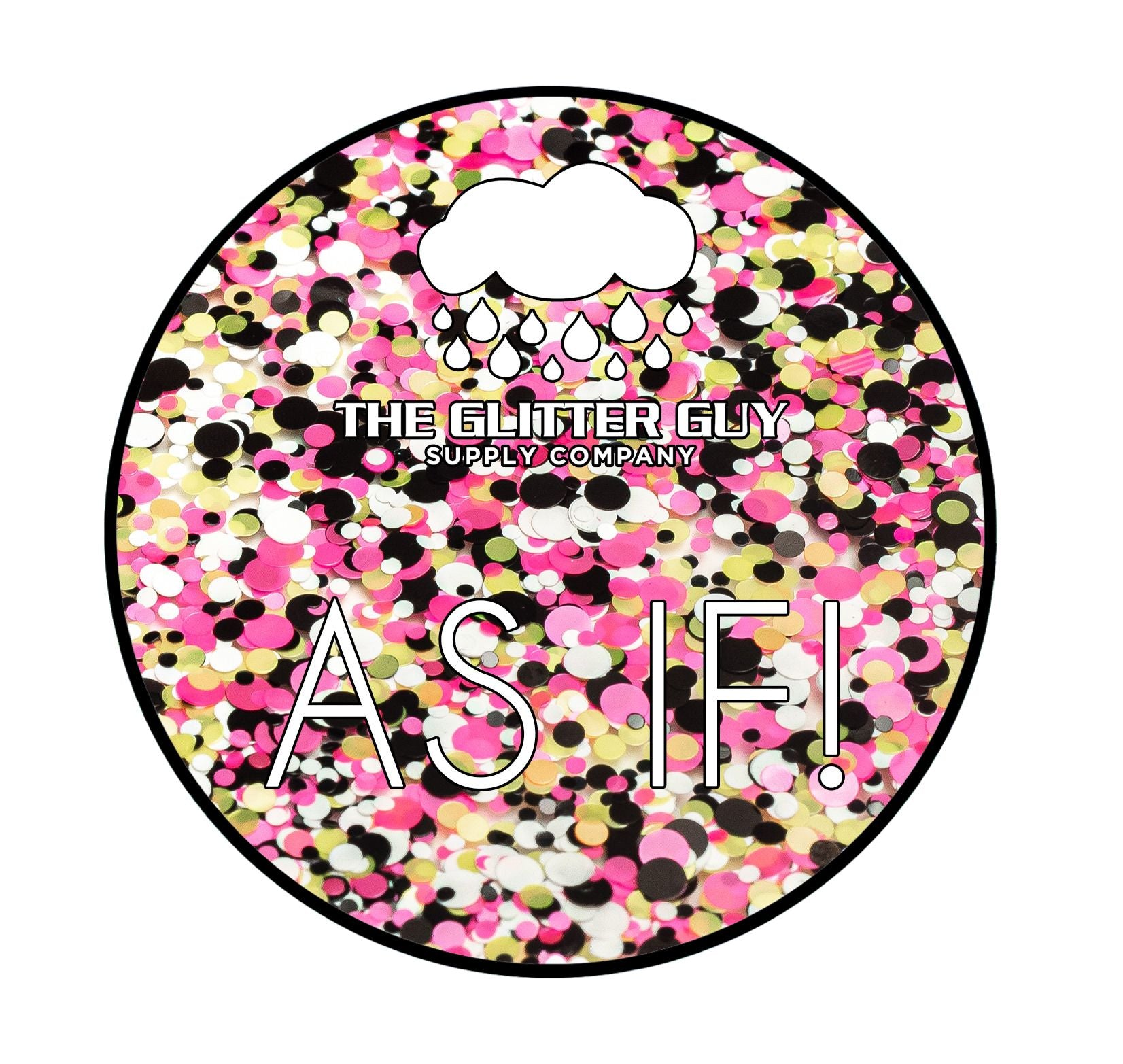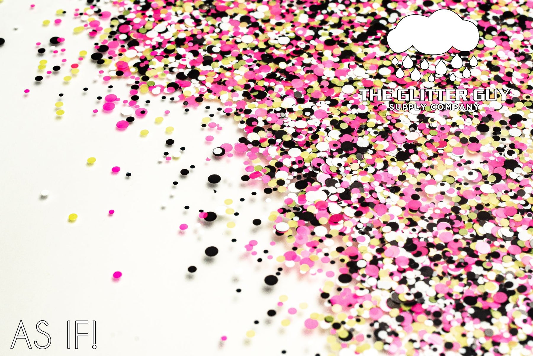 As If is a dot mix of various sized neon black, pink, green and white circle cut glitter.