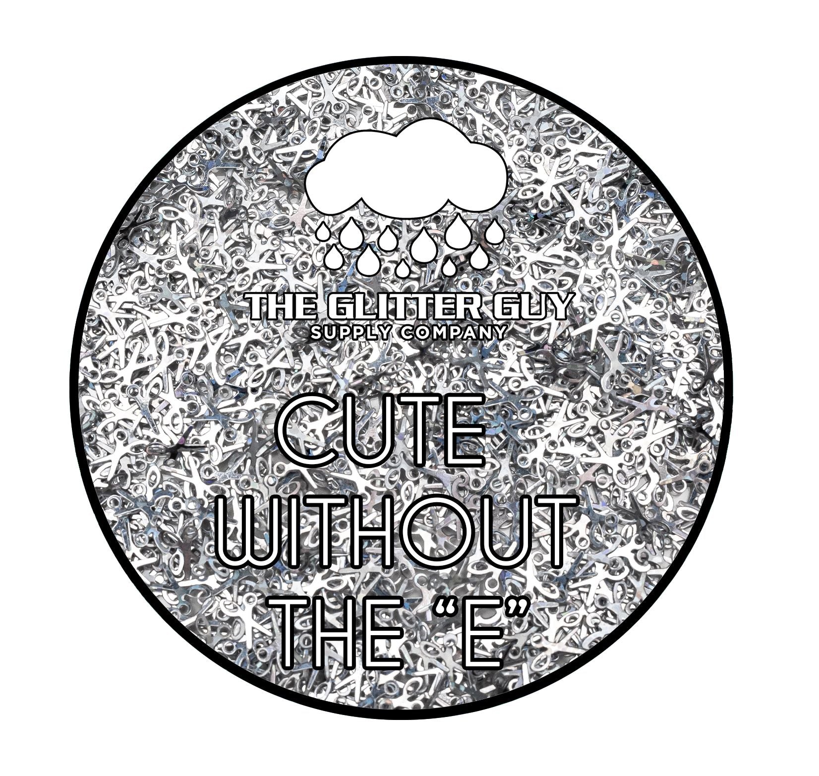 Cute Without The ‘E’ is holographic silver scissor shaped cut glitter.