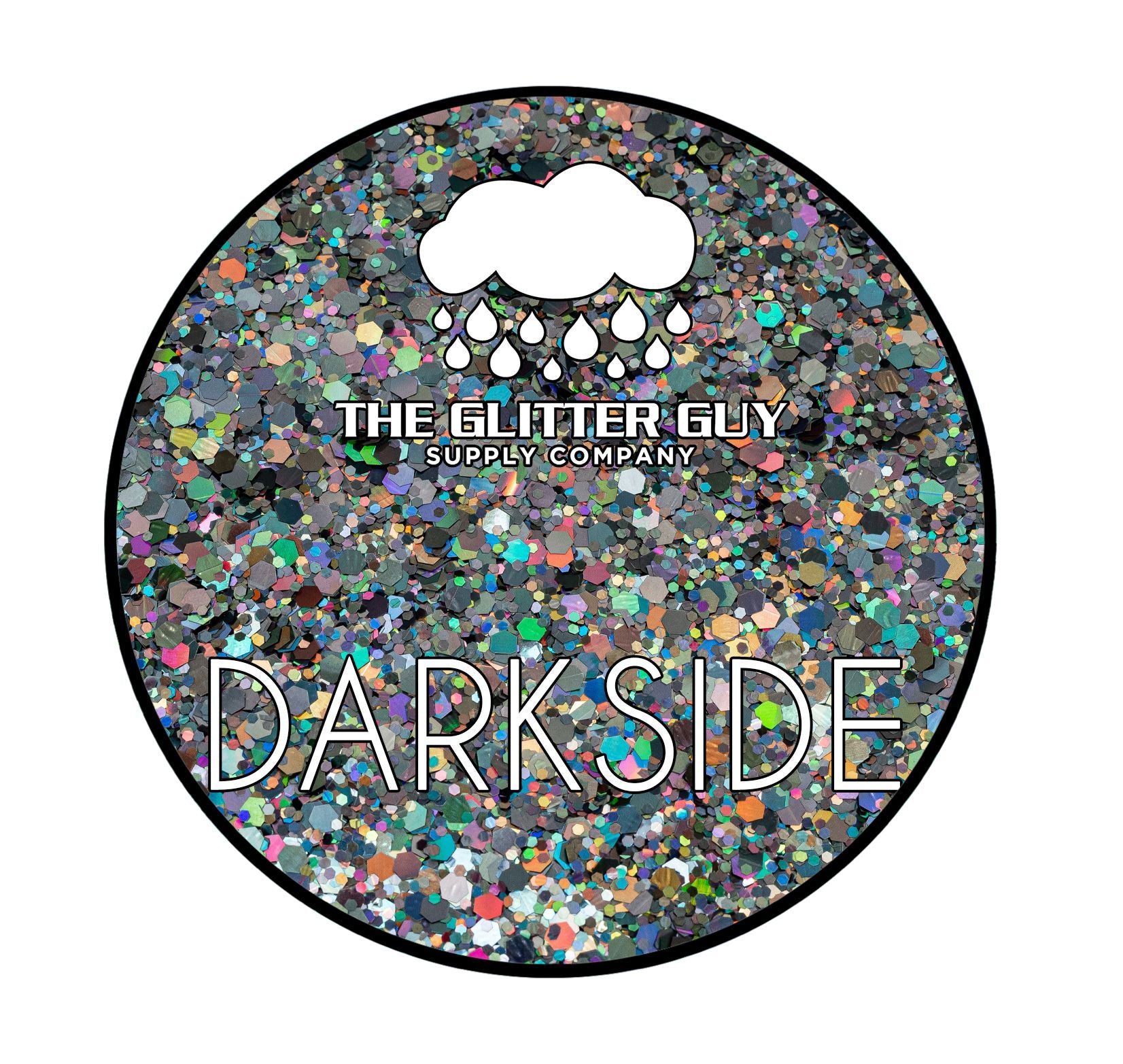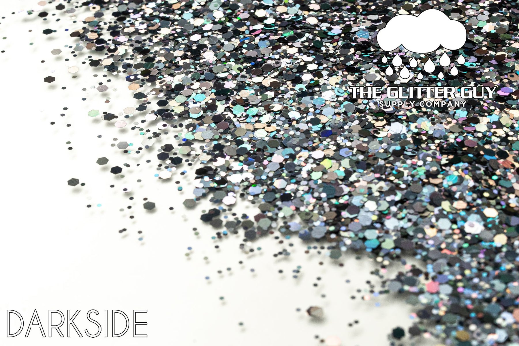 Darkside is a chunky mix of various sized holographic dark grey hexagonal cut glitter.