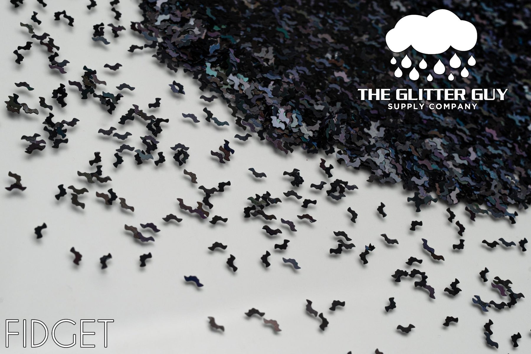 Fidget is holographic black bat shape cut glitter.