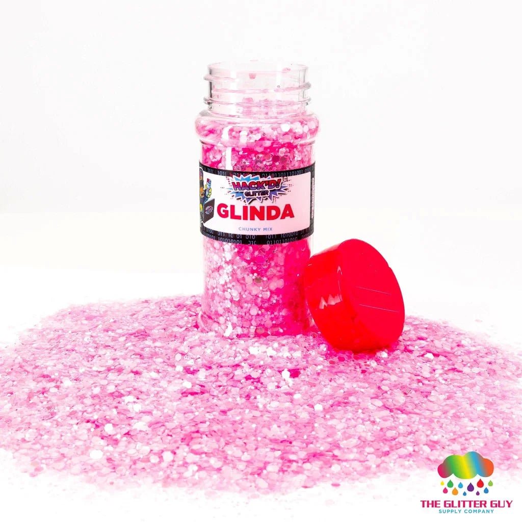 Glinda is a chunky mix of various sized Hack’d™ light pink hexagonal cut glitter.