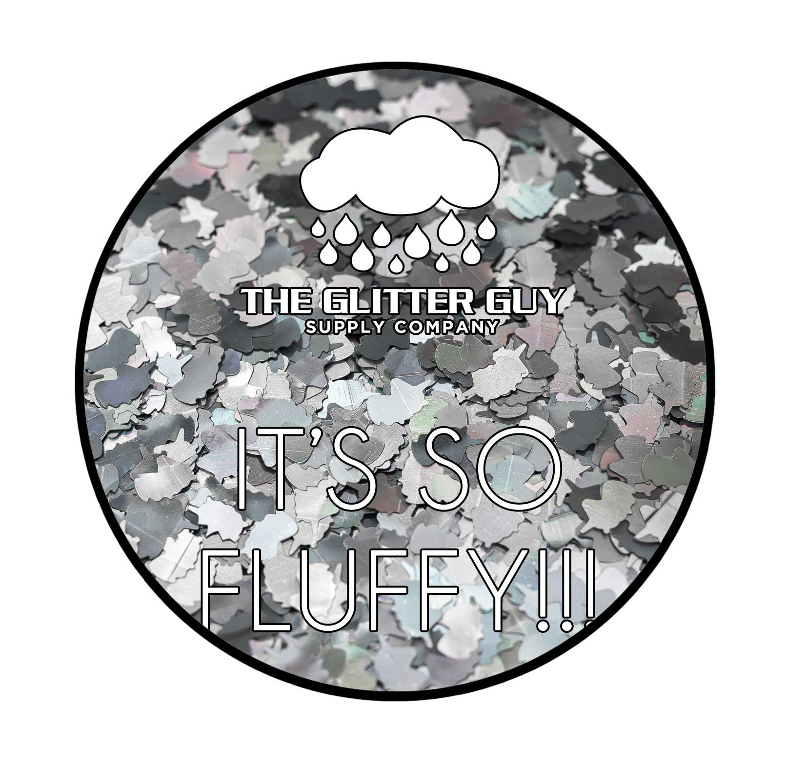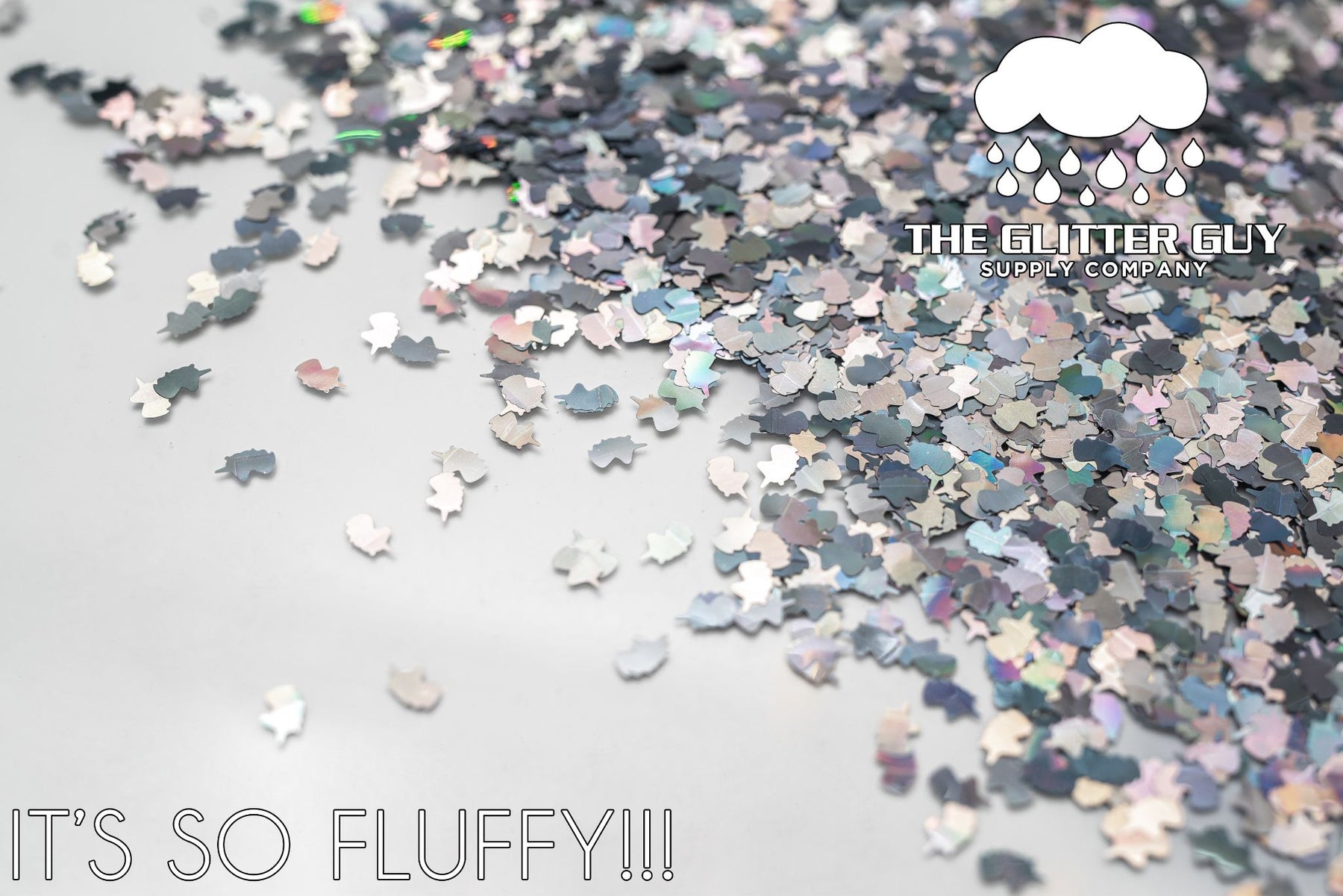 It’s So FLUFFY!! is holographic silver unicorn head shape cut glitter.