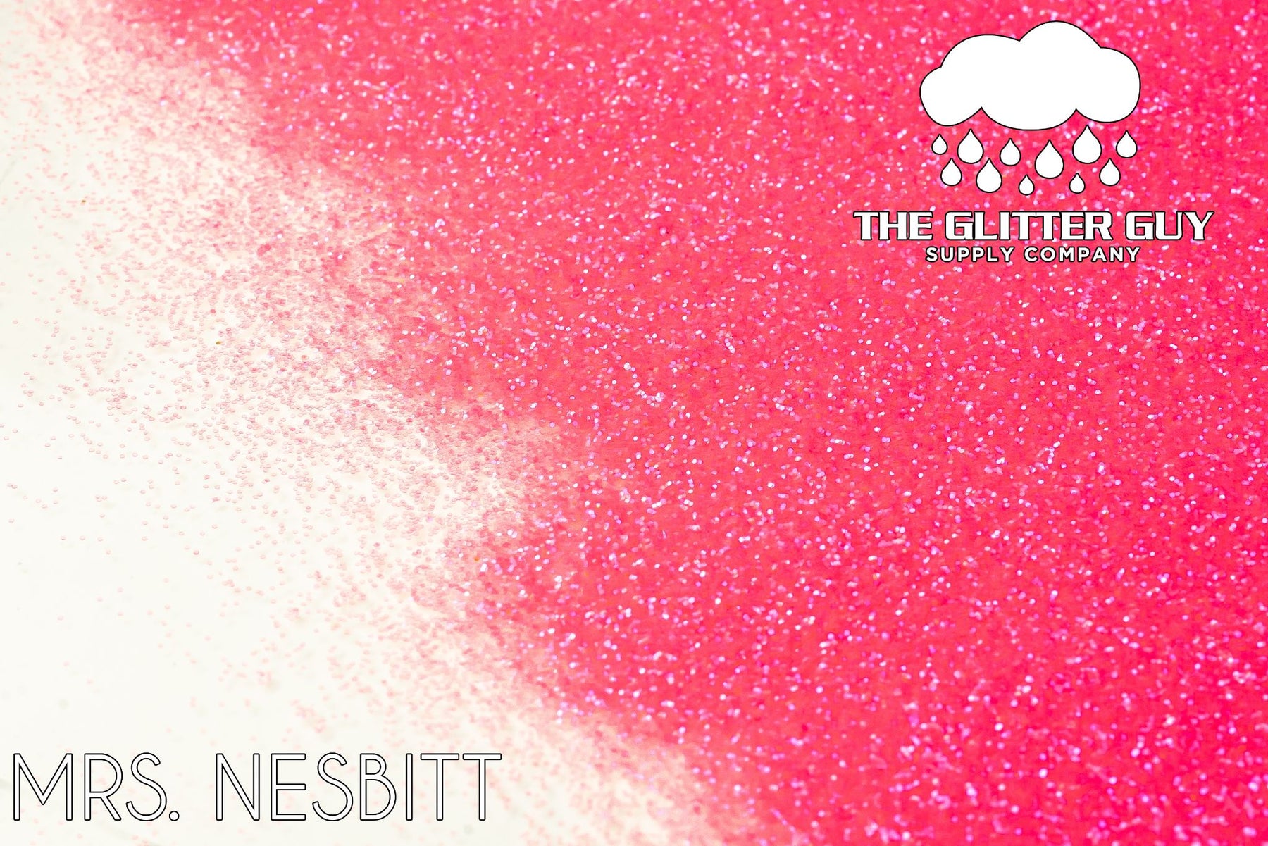 Mrs. Nesbitt is rainbow iridescent hot pink sh-medium cut (0.025 or 1/40) glitter.