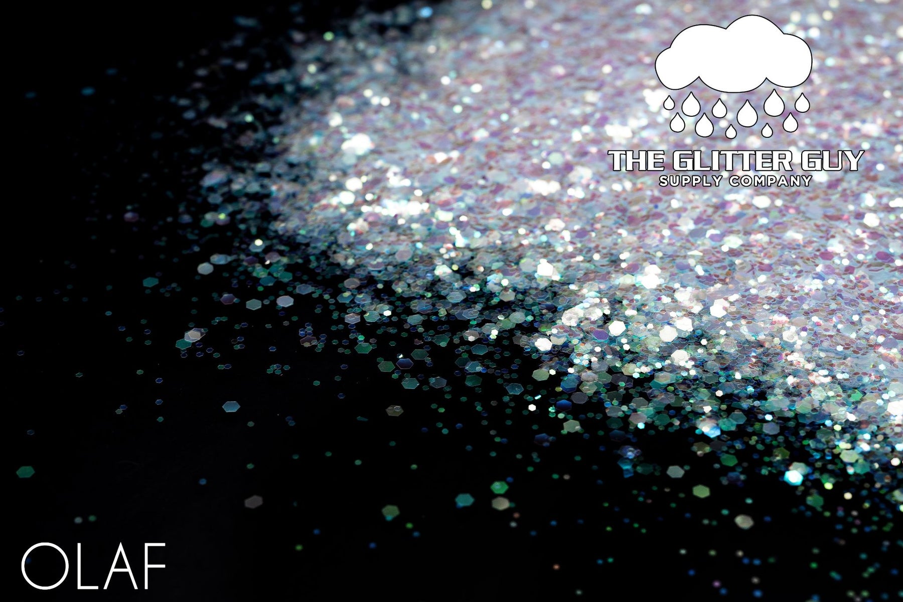 Olaf is a chunky mix of various sized white Hack’d™ hexagonal cut glitter.