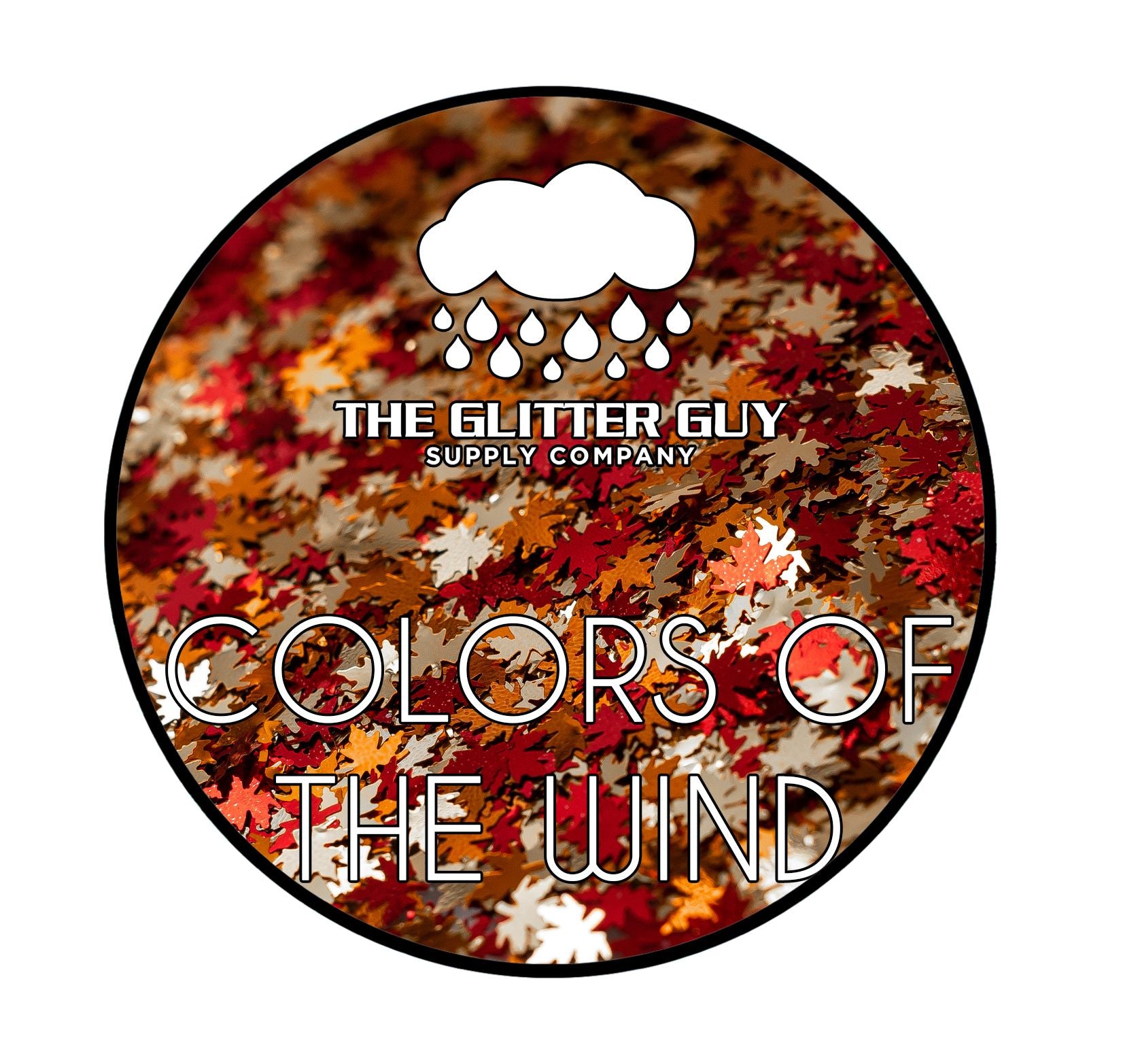 Colors Of The Wind is metallic orange, red, yellow/gold and silver leaf shaped cut glitter.