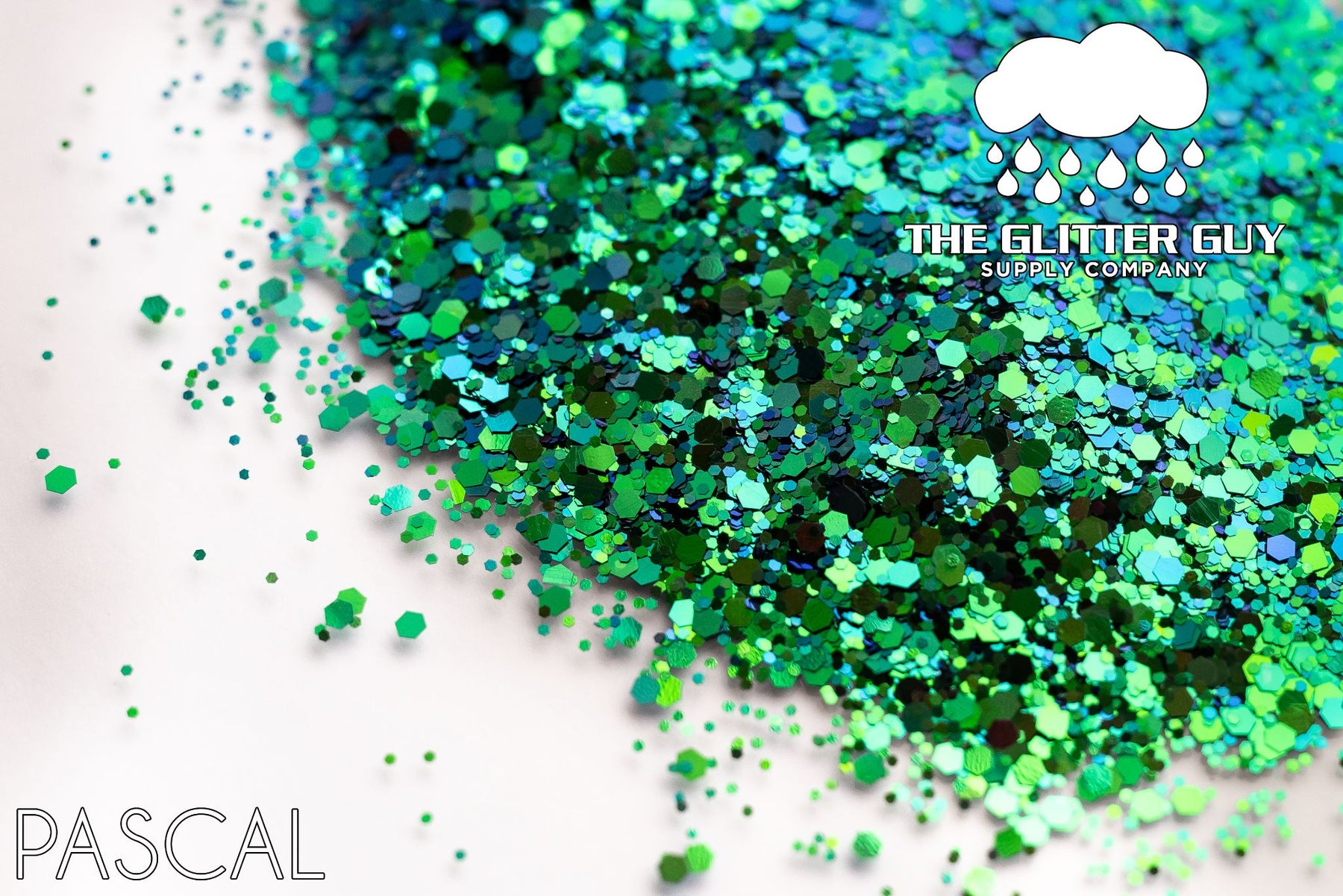 Pascal is a chunky mix of various sized color shifting green and purple hexagonal cut glitter.