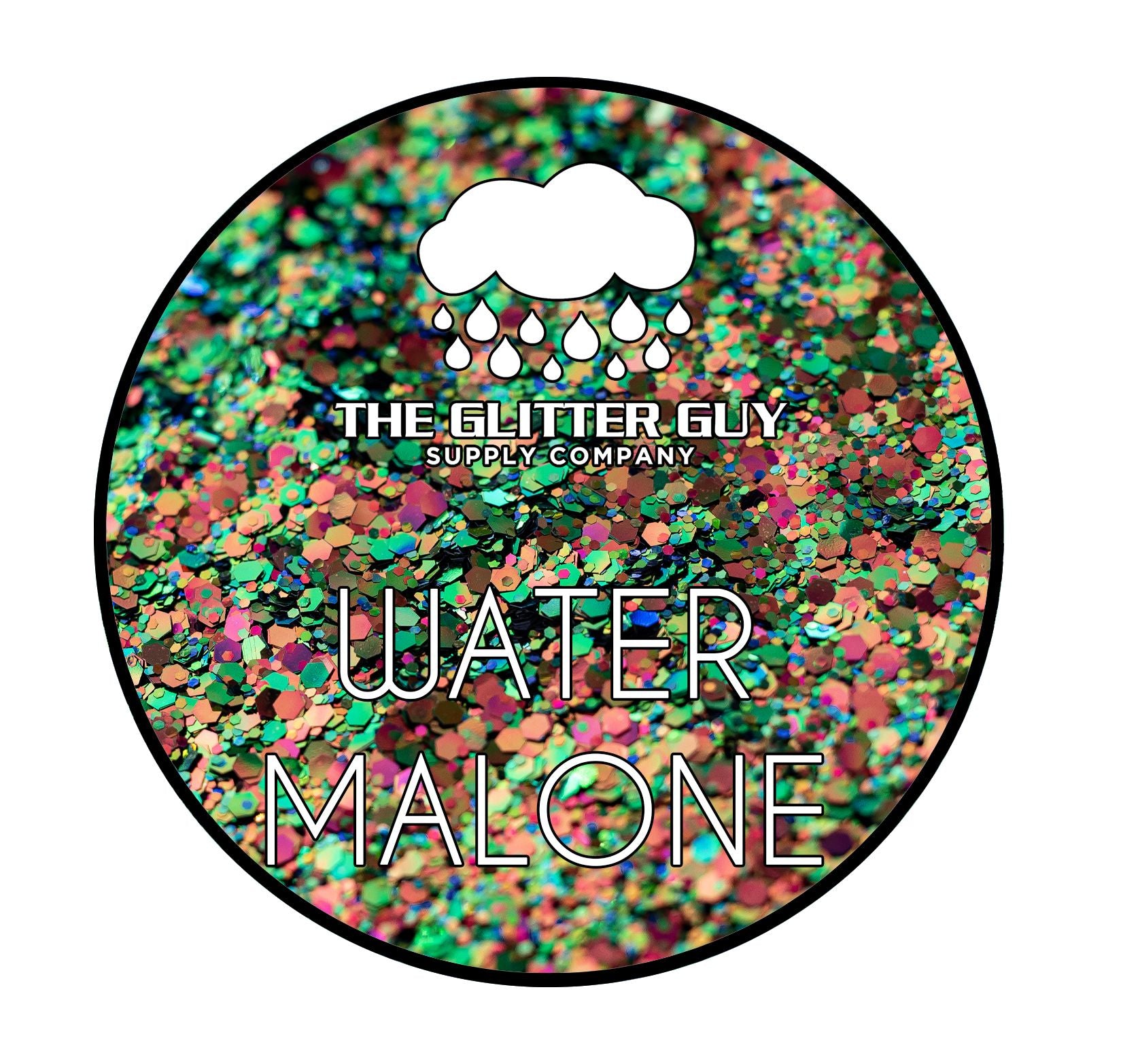 Water Malone is a chunky mix of various sized color shifting green and pink hexagonal cuts.